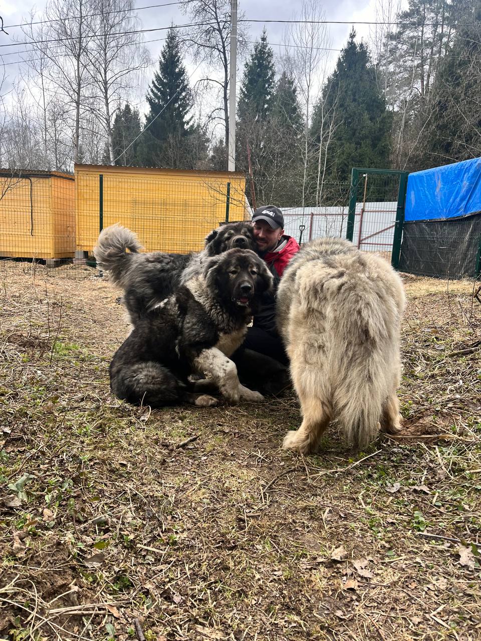 А Мейсик и дед, обследовав вольер, занялись любимым делом - обнимашками с нами))